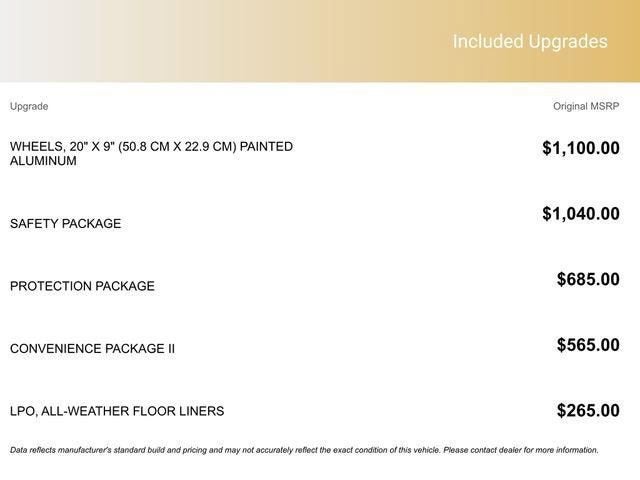10-Way Power Driver Seat w/Lumbar, 12.3 Multicolor Reconfigurable Digital Display, 120-Volt Bed Mounted Power Outlet, 120-Volt Interior Power Outlet, 3.42 Rear Axle Ratio, 4-Wheel Disc Brakes, 40/20/40 Front Split-Bench Seat, 6 Speakers, 6-Speaker Audio System, ABS brakes, Air Conditioning, All-Star Edition, Alloy wheels, AM/FM radio: SiriusXM with 360L, Apple CarPlay/Android Auto, Auto High-beam Headlights, Auto-Locking Rear Differential, Automatic Emergency Braking, Automatic temperature control, Bluetooth® For Phone, Brake assist, Bumpers: chrome, Chrome Mirror Caps, Cloth Seat Trim, Color-Keyed Carpeting Floor Covering, Compass, Convenience Package, Deep-Tinted Glass, Delay-off headlights, Driver door bin, Driver vanity mirror, Dual front impact airbags, Dual front side impact airbags, Dual Rear USB Ports (Charge Only), Dual-Zone Automatic Climate Control, Electric Rear-Window Defogger, Electronic Cruise Control, Electronic Stability Control, Emergency communication system: OnStar, Following Distance Indicator, Forward Collision Alert, Front anti-roll bar, Front Center Armrest w/Storage, Front dual zone A/C, Front Frame-Mounted Black Recovery Hooks, Front Pedestrian Braking, Front reading lights, Front wheel independent suspension, Fully automatic headlights, HD Rear Vision Camera, Heated door mirrors, Heated Driver & Front Outboard Passenger Seats, Heated front seats, Heated Steering Wheel, Heated steering wheel, High Capacity Suspension Package, Hitch Guidance, Illuminated entry, Integrated Trailer Brake Controller, IntelliBeam Automatic High Beam On/Off, Keyless Open & Start, Lane Keep Assist w/Lane Departure Warning, LED Cargo Area Lighting, Low tire pressure warning, Manual Tilt/Telescoping Steering Column, Occupant sensing airbag, OnStar Services Capable, Outside temperature display, Overhead airbag, Overhead console, Panic alarm, Passenger door bin, Passenger vanity mirror, Power door mirrors, Power driver seat, Power Front Windows w/Driver Express Up/Down, Power Front Windows w/Passenger Express Down, Power Rear Windows w/Express Down, Power steering, Power windows, Premium audio system: Chevrolet Infotainment 3 Premium, Radio data system, Radio: Chevrolet Infotainment 3 Premium System, Rear 60/40 Folding Bench Seat (Folds Up), Rear reading lights, Rear step bumper, Rear window defroster, Remote keyless entry, Remote Vehicle Starter System, Security system, SiriusXM w/360L Trial Subscription, Speed control, Speed-sensing steering, Split folding rear seat, Standard Suspension Package, Steering Wheel Audio Controls, Steering wheel mounted audio controls, Tachometer, Teen Driver, Telescoping steering wheel, Theft Deterrent System (Unauthorized Entry), Tilt steering wheel, Tire Pressure Monitoring System, Traction control, Trailering Package, Trip computer, Variably intermittent wipers, Voltmeter, Wheels: 18 x 8.5 Bright Silver Painted Aluminum, Wheels: 20 x 9 Painted Aluminum, Wi-Fi Hot Spot Capable, Wrapped Steering Wheel.