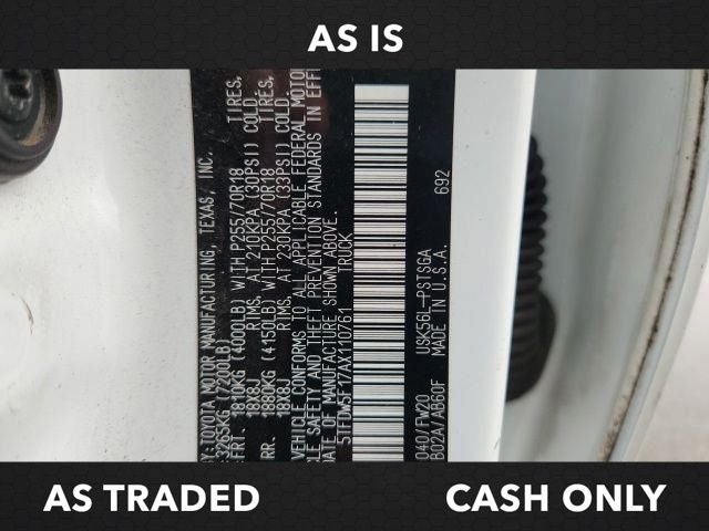 Super White 2010 Toyota Tundra Grade CrewMax 4WD 6-Speed Automatic Electronic i-Force 5.7L V8 DOHC FFV WE DELIVER ANYWHERE, i-Force 5.7L V8 DOHC FFV, 4WD, Graphite w/Fabric Seat Trim or Heavy Duty Vinyl Seat Trim w/Work Truck or Fabric Seat Trim w/SR5 Package or Fabric Seat Trim w/Off-Road Package or Fabric Seat Trim w/Sport Appearance Package or Fabric Seat Trim w/TRD Sport Package, Fabric Seat Trim w/SR5 Package, SR5 Package, Tow Package, 18 x 8J Steel Wheels, 3-Passenger Front Bench Seat, 4-Wheel Disc Brakes, 4.10 Axle Ratio, 6 Speakers, ABS brakes, Air Conditioning, AM/FM radio, AM/FM/CD/MP3 Audio, Brake assist, Bumpers: chrome, CD player, Driver door bin, Driver vanity mirror, Dual front impact airbags, Dual front side impact airbags, Electronic Stability Control, Fabric Seat Trim, Front anti-roll bar, Front Center Armrest w/Storage, Front dual zone A/C, Front reading lights, Front wheel independent suspension, Illuminated entry, Knee airbag, Low tire pressure warning, Occupant sensing airbag, Outside temperature display, Overhead airbag, Overhead console, Panic alarm, Passenger door bin, Passenger vanity mirror, Power door mirrors, Power steering, Power windows, Rear reading lights, Rear seat center armrest, Rear step bumper, Rear window defroster, Remote keyless entry, Speed control, Speed-sensing steering, Split folding rear seat, Tachometer, Tilt steering wheel, Traction control, Variably intermittent wipers, Voltmeter, i-Force 5.7L V8 DOHC FFV, 4WD, Graphite w/Fabric Seat Trim or Heavy Duty Vinyl Seat Trim w/Work Truck or Fabric Seat Trim w/SR5 Package or Fabric Seat Trim w/Off-Road Package or Fabric Seat Trim w/Sport Appearance Package or Fabric Seat Trim w/TRD Sport Package, Fabric Seat Trim w/SR5 Package, SR5 Package, Tow Package.