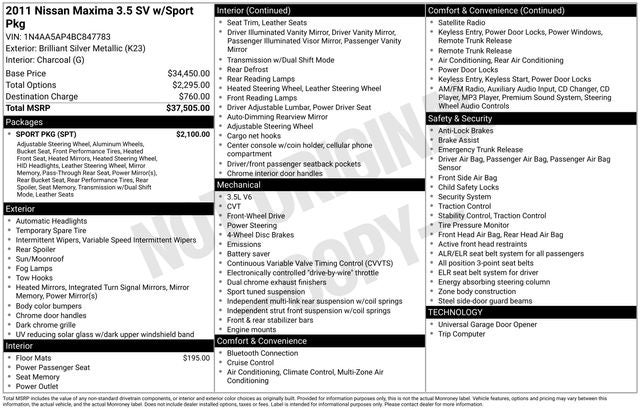 2011 Nissan Maxima 3.5 SV