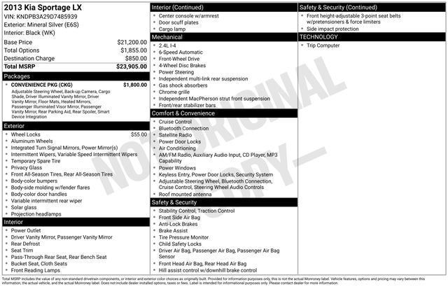 Mineral Silver 2013 Kia Sportage LX 2.4L I4 DGI DOHC 16V SULEV 6-Speed Automatic FWD