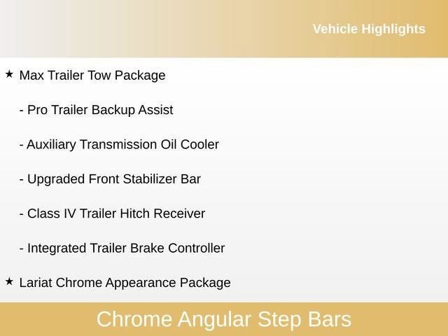 This Lariat trim level is packed with premium features that elevate your driving experience. The powerful 3.5L V6 EcoBoost engine, paired with a 6-speed automatic transmission and 4WD, delivers impressive performance and capability. The Max Trailer Tow Package ensures you can haul your toys with confidence, while the Lariat Chrome Appearance Package adds a touch of refined style.