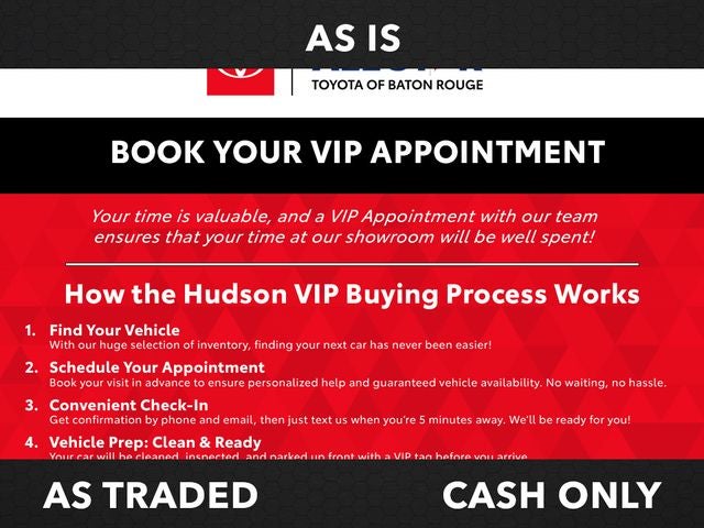 If provided, Advertised Price EXCLUDES all optional dealer offered items, accessories, or product addendums optionally selected by the purchaser, and official government charges, taxes and fees. Further, dealership charges a $436 documentation fee as regulated by LA state and federal law, included in Advertised Price. By submitting your information, you consent to receive all forms of communication including but not limited to phone, text, email, mail, etc. Message and data rates may apply. Consent to these terms is not a condition of purchase. You may opt out at any time. MPG based on model year EPA mileage ratings. Use for comparison purposes only. Certain discounts and incentives may be available to all of the general public, or may have certain conditions, such as being financed through a required specific lender, call Dealer for details or see disclosures herein. Certain used vehicles may be subject to important disclosures provided to you prior to purchase; please consider carefully before your purchase decision. If made, references to the dealer’s Lifetime Limited Powertrain Warranty (LLPW) only relate to vehicles that qualify for such LLPW due to age and mileage status.