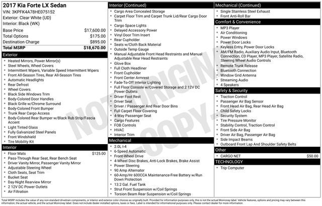 Under the hood, the 2.0L I4 DOHC Dual CVVT engine delivers a remarkable 38 MPG on the highway, ensuring exceptional fuel efficiency for your daily commute or weekend adventures. With a 6-speed automatic transmission and front-wheel drive, this Forte LX offers a smooth, responsive driving experience that will have you eagerly anticipating each trip.
