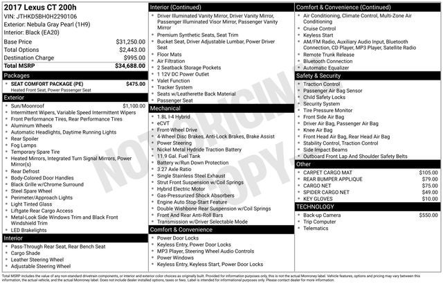 2017 Lexus CT 200h Recent Arrival!