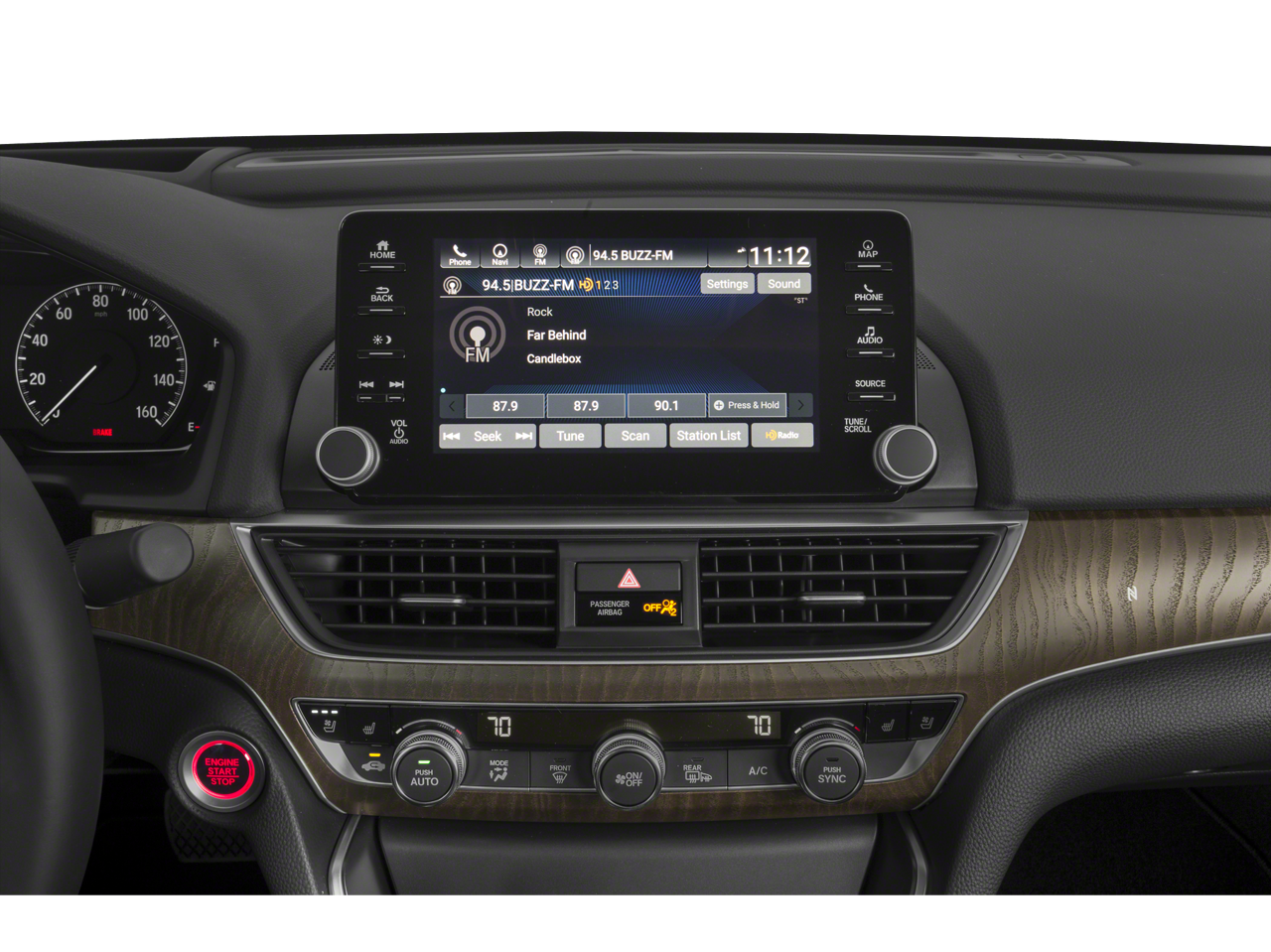 2018 Honda Accord Touring 2.0T FWD 10-Speed Automatic I4 DOHC 16V Turbocharged 10 Speakers, 4-Wheel Disc Brakes, ABS brakes, Adaptive suspension, Air Conditioning, Alloy wheels, AM/FM radio: SiriusXM, Apple CarPlay/Android Auto, Auto High-beam Headlights, Auto-dimming Rear-View mirror, Automatic temperature control, Blind Spot Information (BSI) System warning, Brake assist, Bumpers: body-color, Compass, Delay-off headlights, Driver door bin, Driver vanity mirror, Dual front impact airbags, Dual front side impact airbags, Electronic Stability Control, Emergency communication system: HondaLink, Exterior Parking Camera Rear, Four wheel independent suspension, Front anti-roll bar, Front Bucket Seats, Front Center Armrest, Front dual zone A/C, Front fog lights, Front reading lights, Fully automatic headlights, Garage door transmitter: HomeLink, Heads-Up Display, Heated & Ventilated Front Bucket Seats, Heated door mirrors, Heated front seats, Heated rear seats, Illuminated entry, Knee airbag, Leather Shift Knob, Leather steering wheel, Leather-Trimmed Seats, Low tire pressure warning, Memory seat, Navigation System, Occupant sensing airbag, Outside temperature display, Overhead airbag, Overhead console, Panic alarm, Passenger door bin, Passenger vanity mirror, Power door mirrors, Power driver seat, Power moonroof, Power passenger seat, Power steering, Power windows, Radio data system, Radio: 450-Watt AM/FM/HD Premium Audio System, Rain sensing wipers, Rear anti-roll bar, Rear seat center armrest, Rear window defroster, Remote keyless entry, Security system, Speed control, Speed-sensing steering, Speed-Sensitive Wipers, Split folding rear seat, Steering wheel mounted audio controls, Tachometer, Telescoping steering wheel, Tilt steering wheel, Traction control, Trip computer, Turn signal indicator mirrors, Variably intermittent wipers, Ventilated front seats, Wheels: 19 Machine-Finished Alloy w/Gray Inserts.