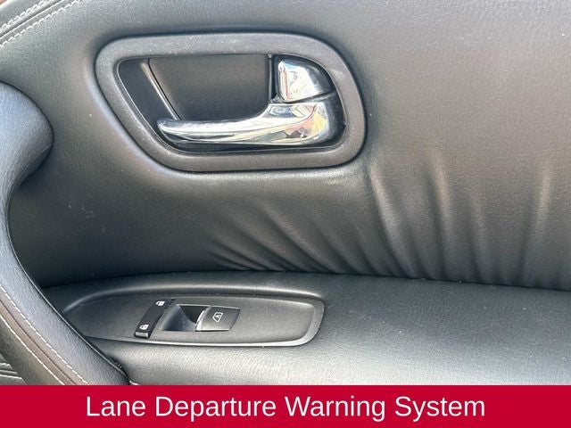 Adorned in a stunning Pearl White exterior, this Armada Platinum is equipped with a wealth of premium features that elevate the driving experience: