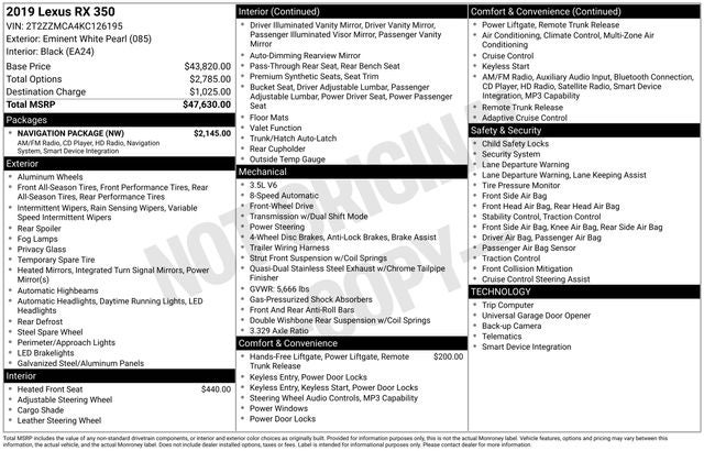 Discover the perfect balance of luxury, technology, and performance in the 2019 Lexus RX 350. Schedule a test drive today and experience the difference for yourself. We're confident this exceptional crossover will exceed your expectations.