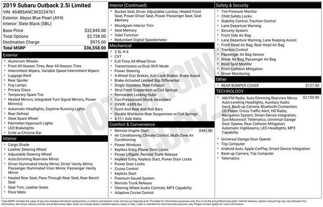 Whether you're embarking on a family road trip, tackling rugged terrain, or simply commuting in style, this 2019 Subaru Outback 2.5i Limited is the perfect companion. Experience the perfect blend of capability, technology, and comfort that Subaru is renowned for. Visit our showroom today and let us demonstrate why this exceptional Outback should be your next vehicle.