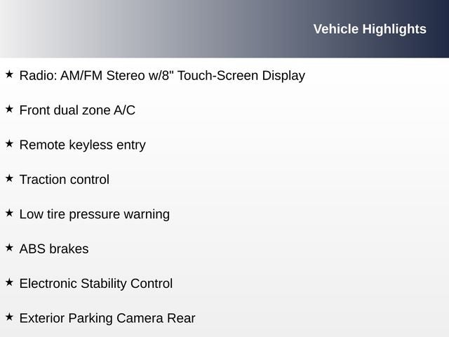 - Radio: AM/FM Stereo w/8 Touch-Screen Display