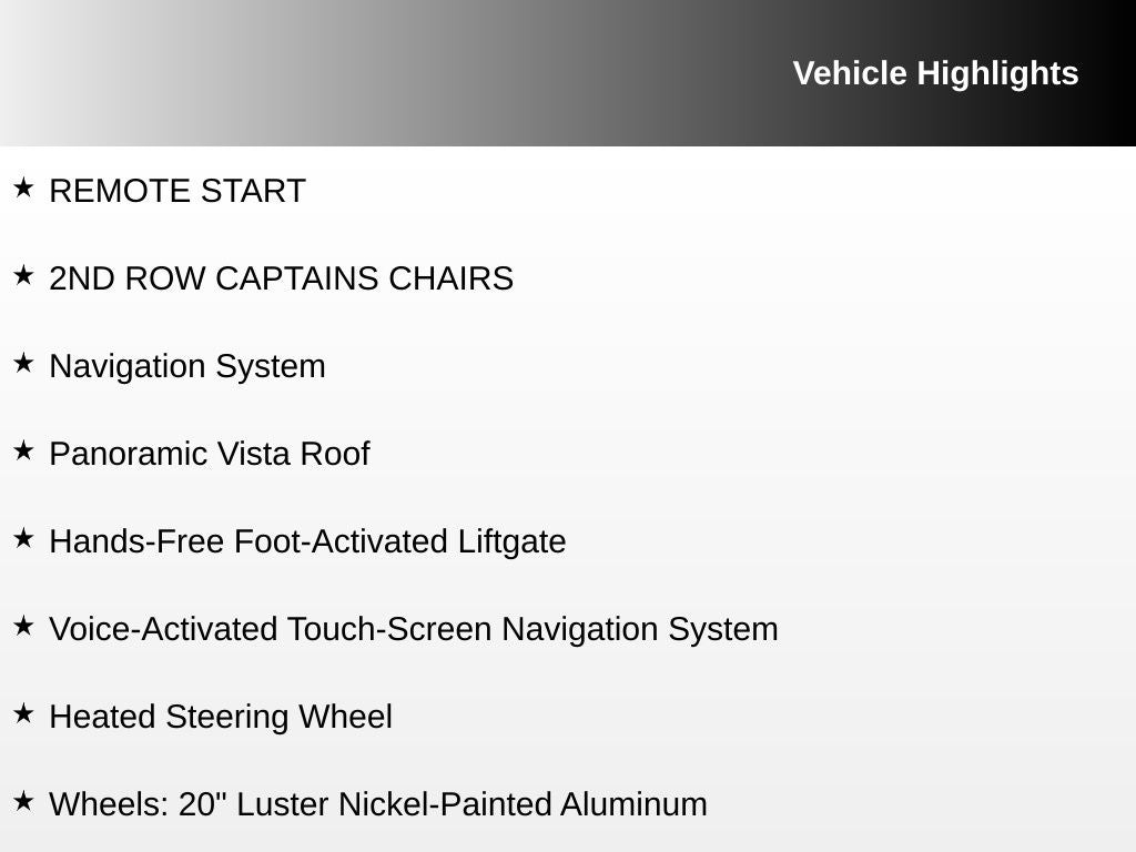 - Wheels: 20" Luster Nickel-Painted Aluminum