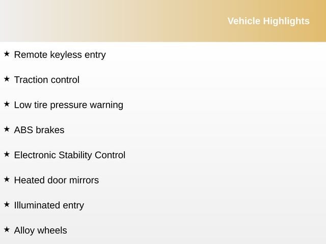 ABS brakes, Air Conditioning, AM/FM radio: SiriusXM, Anti-whiplash front head restraints, Apple CarPlay/Android Auto, Auto High-beam Headlights, Brake assist, Bumpers: body-color, Driver door bin, Dual front impact airbags, Dual front side impact airbags, Electronic Stability Control, Emergency communication system: Safety Connect with 1-year trial, Front anti-roll bar, Front Bucket Seats, Front Center Armrest, Front reading lights, Front wheel independent suspension, Illuminated entry, Knee airbag, Low tire pressure warning, Occupant sensing airbag, Outside temperature display, Overhead airbag, Overhead console, Passenger door bin, Power door mirrors, Power steering, Power windows, Rear step bumper, Speed control, Speed-sensing steering, Split folding rear seat, Steering wheel mounted audio controls, Tachometer, Telescoping steering wheel, Tilt steering wheel, Traction control, Variably intermittent wipers.