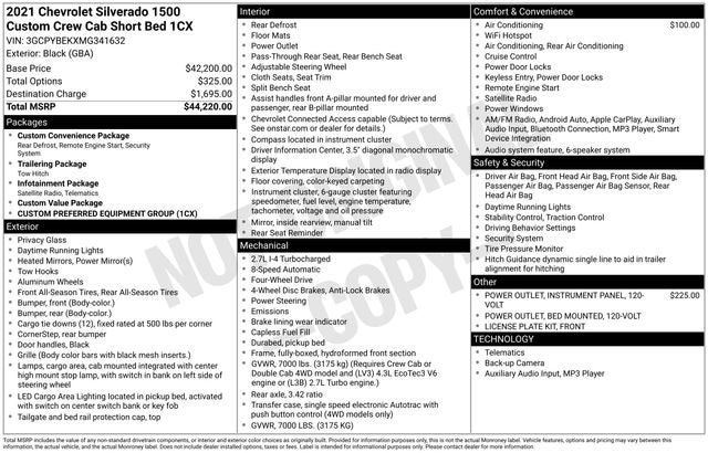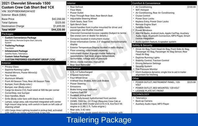 - Custom Value Package includes (PCX) Custom Convenience Package, (ZLA) Infotainment Package and (Z82) Trailering Package