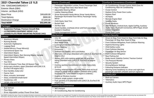 This Tahoe LS also boasts a stunning set of 20 x 9 Painted Aluminum Wheels, adding a touch of elegance to the already impressive exterior. The Preferred Equipment Group 1LS further enhances the Tahoe's capabilities, providing you with a host of advanced features and technologies.