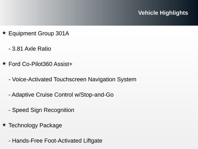 - Ford Co-Pilot360 Assist+, including adaptive cruise control, evasive steering assist, and voice-activated navigation