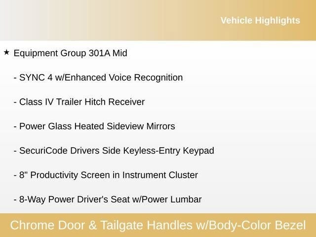 • SYNC 4 -inc: 8" LCD capacitive touchscreen w/swipe capability, wireless phone connection, cloud connected, AppLink w/App catalog, 911 Assist, Apple CarPlay and Android Auto compatibility and digital owners manual