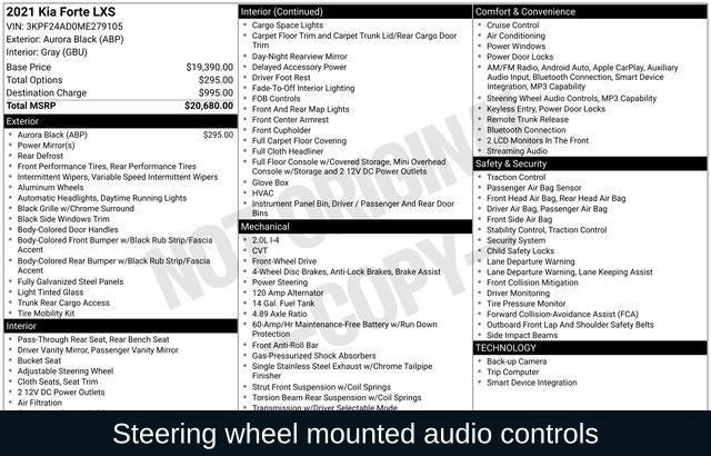 The 2021 Kia Forte LXS comes equipped with an impressive array of features that elevate your driving experience: