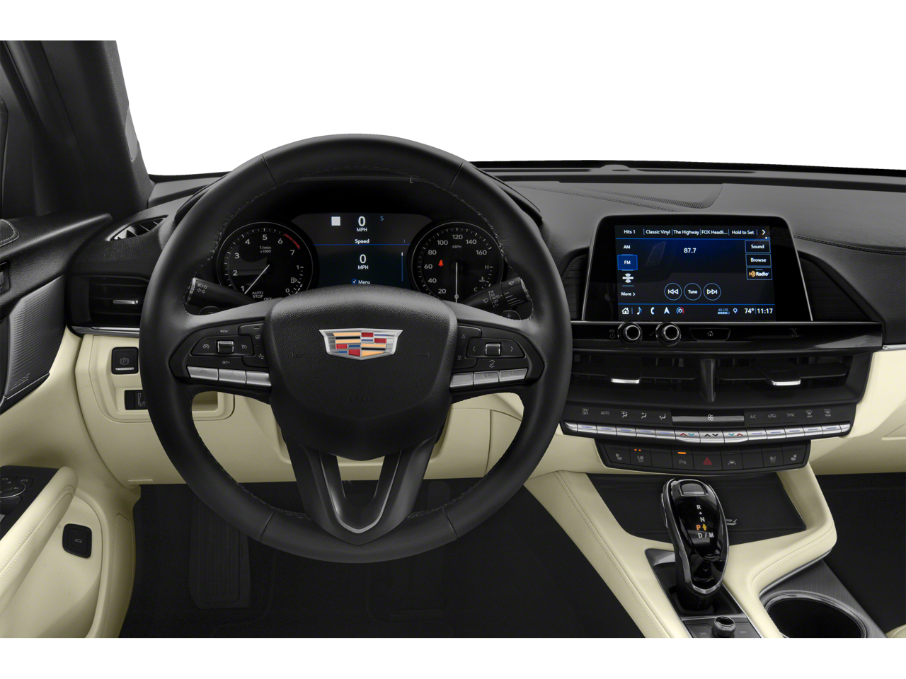 - Cadillac user experience, AM/FM stereo with 8" diagonal HD color information display, 2 USBs, personalized profiles for each driver's settings, Natural Voice Recognition, Phone Integration for Wireless Apple CarPlay/Wireless Android Auto capability for compatible phone, Connected Apps and Teen Driver (Upgradeable to (IOT) Cadillac user experience with embedded navigation when (PCM) Sun and Sound Package is ordered.)