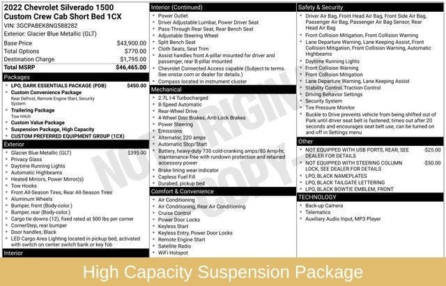 - Custom Convenience Package includes (BTV) Remote Start with (UTJ) content theft alarm, (C49) rear-window defogger, (UF2) bed LED cargo area lighting and (QT5) EZ Lift power lock and release tailgate (Included and only available with (PDX) Custom Value Package.)