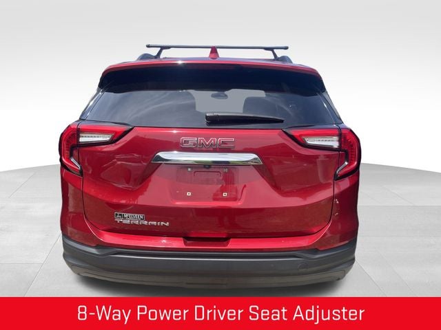 Boasting a striking Cayenne Red Tintcoat exterior, the Terrain SLE commands attention with its bold presence. Key features include a power programmable rear liftgate, roof rack cross rails, and a suite of advanced connectivity options, including wireless Apple CarPlay and Android Auto integration.