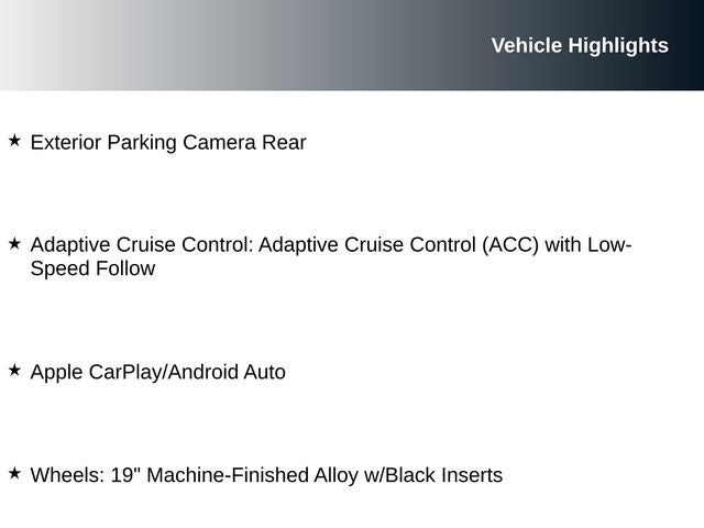 - Adaptive Cruise Control: Adaptive Cruise Control (ACC) with Low-Speed Follow