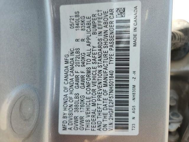 Lunar Silver Metallic 2022 Honda Civic Sport FWD CVT 2.0L I4 DOHC 16V i-VTEC WE DELIVER ANYWHERE, Black w/Leather-Trimmed Seating Surfaces, 4-Wheel Disc Brakes, 8 Speakers, ABS brakes, Adaptive Cruise Control: Adaptive Cruise Control (ACC) with Low-Speed Follow, Air Conditioning, Alloy wheels, AM/FM radio, Apple CarPlay/Android Auto, Auto High-beam Headlights, Automatic temperature control, Brake assist, Bumpers: body-color, Cloth Seat Trim, Delay-off headlights, Driver door bin, Driver vanity mirror, Dual front impact airbags, Dual front side impact airbags, Electronic Stability Control, Emergency communication system: HondaLink, Exterior Parking Camera Rear, Forward collision: Collision Mitigation Braking System (CMBS) + FCW mitigation, Four wheel independent suspension, Front anti-roll bar, Front Bucket Seats, Front Center Armrest, Front reading lights, Fully automatic headlights, Illuminated entry, Knee airbag, Leather Shift Knob, Leather steering wheel, Low tire pressure warning, Occupant sensing airbag, Outside temperature display, Overhead airbag, Panic alarm, Passenger door bin, Passenger vanity mirror, Power door mirrors, Power steering, Power windows, Radio data system, Radio: 180-Watt AM/FM Audio System, Rear anti-roll bar, Rear side impact airbag, Rear window defroster, Remote keyless entry, Security system, Speed control, Speed-sensing steering, Steering wheel mounted audio controls, Tachometer, Telescoping steering wheel, Tilt steering wheel, Traction control, Trip computer, Wheels: 18 Gloss Black Alloy, Black w/Leather-Trimmed Seating Surfaces.