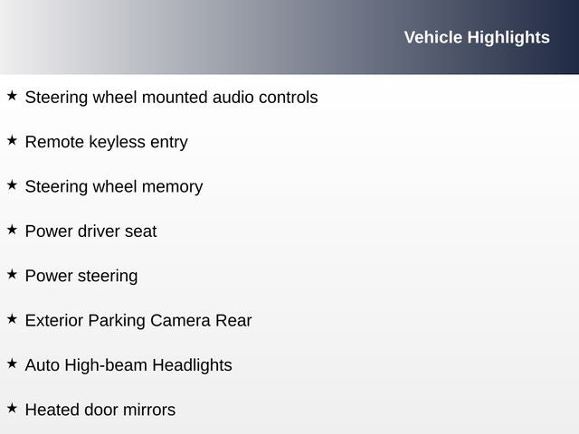- Body-Colored Power Heated Side Mirrors w/Driver Auto Dimming, Power Folding and Turn Signal Indicator