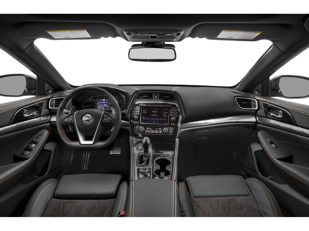 11 Speakers, 4-Wheel Disc Brakes, ABS brakes, Air Conditioning, Alloy wheels, AM/FM radio: SiriusXM, Auto High-beam Headlights, Auto-dimming door mirrors, Auto-dimming Rear-View mirror, Automatic temperature control, Bag Hooks, Blind Spot Warning, Brake assist, Bumpers: body-color, CD player, Compass, Delay-off headlights, Driver door bin, Driver vanity mirror, Dual front impact airbags, Dual front side impact airbags, Electronic Stability Control, Emergency communication system: NissanConnect Services, Exterior Parking Camera Rear, First-Aid Kit, Four wheel independent suspension, Front anti-roll bar, Front Bucket Seats, Front Center Armrest, Front dual zone A/C, Front fog lights, Front reading lights, Front Zero Gravity Climate-Controlled Seats, Fully automatic headlights, Garage door transmitter: HomeLink, Heated door mirrors, HEATED FRONT SEATS, Heated steering wheel, Illuminated entry, Knee airbag, Low tire pressure warning, Memory seat, NAVIGATION, NissanConnect featuring Apple CarPlay and Android Auto, Occupant sensing airbag, Outside temperature display, Overhead airbag, Overhead console, Panic alarm, Passenger door bin, Passenger vanity mirror, Power door mirrors, Power driver seat, Power moonroof, Power passenger seat, Power steering, Power windows, Premium Ascot Leather-Appointed Seat Trim, Radio data system, Radio: AM/FM/CD Bose Audio System, Rear anti-roll bar, Rear reading lights, Rear seat center armrest, Rear side impact airbag, Rear window defroster, Remote keyless entry, Security system, Speed control, Speed-sensing steering, Speed-Sensitive Wipers, Split folding rear seat, Spoiler, Sport Floor Mats, Sport steering wheel, Steering wheel mounted audio controls, Tachometer, Telescoping steering wheel, Tilt steering wheel, Traction control, Trip computer, Trunk Mat, Trunk Net, Turn signal indicator mirrors, Variably intermittent wipers, Ventilated front seats, Wheels: 19 Gloss Black Alloy w/Center Caps.
