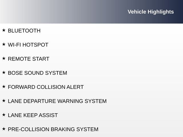 • SiriusXM Radio enjoy a Platinum Plan trial subscription with over 150 channels including commercial-free music, plus sports, news and entertainment. Plus listening on the SiriusXM app, online and at home on compatible connected devices is included, so you'll hear the best SiriusXM has to offer, anywhere life takes you. Welcome to the world of SiriusXM. (IMPORTANT: The SiriusXM radio trial package is not provided on vehicles that are ordered for Fleet Daily Rental ("FDR") use. If you decide to continue service after your trial, the subscription plan you choose will automatically renew thereafter and you will be charged according to your chosen payment method at then-current rates. Fees and taxes apply. See the SiriusXM Customer Agreement at www.siriusxm.com for complete terms and how to cancel. All fees, content, features, and availability are subject to change.)
