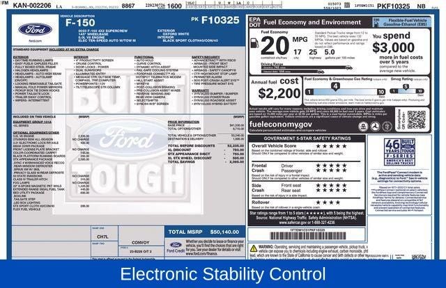 Oxford White 2023 Ford F-150 STX RWD 10-Speed Automatic 5.0L V8 ABS brakes, Compass, Electronic Stability Control, Heated door mirrors, Illuminated entry, Low tire pressure warning, Remote keyless entry, Traction control.