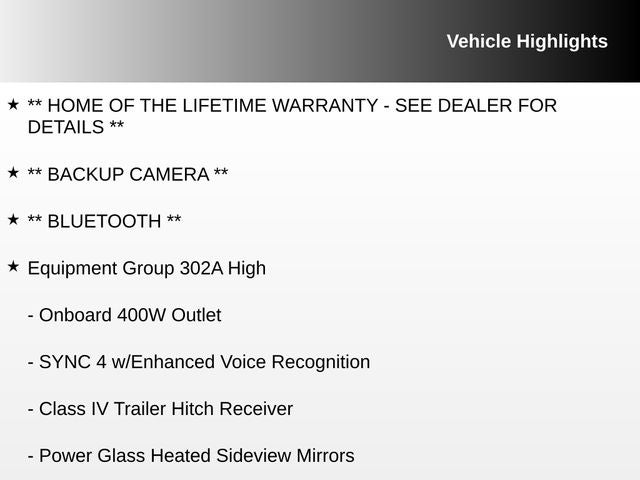** HOME OF THE LIFETIME WARRANTY - SEE DEALER FOR DETAILS **, ** BACKUP CAMERA **, ** Bluetooth® **, 4WD, 10-Way Power Driver & Passenger Seats, 8 Productivity Screen in Instrument Cluster, Accent-Color Step Bars, Bed Utility Package, Black 2-Bar Style Grille w/Black Surround/Accents, Body-Color Door & Tailgate Handles, Body-Color Front & Rear Bumpers, Box Side Decals, BoxLink, Class IV Trailer Hitch Receiver, Connected Built-In Navigation, Dual Zone Electronic Automatic Temperature Control, Equipment Group 302A High, Evasive Steering Assist, Ford Co-Pilot360 Assist 2.0, Heated Front Seats, Integrated Trailer Brake Controller, Intelligent Access w/Push Button Start, Intelligent Adaptive Cruise Control w/Stop & Go, Intersection Assist, LED Box Lighting, LED Reflector Headlamps, LED Sideview Mirror Spotlights, Onboard 400W Outlet, Power Glass Heated Sideview Mirrors, Pro Trailer Backup Assist & Pro Trailer Hitch Assist, Rear Under-Seat Storage, Remote Start System w/Remote Tailgate Release, SYNC 4 w/Enhanced Voice Recognition, Tailgate Step w/Tailgate Work Surface, Trailer Tow Package, Unique Sport Cloth 40/Console/40 Front-Seats, Wheels: 18 6-Spoke Machined Aluminum, Wrapped Steering Wheel, XLT Sport Appearance Package, Zone Lighting.