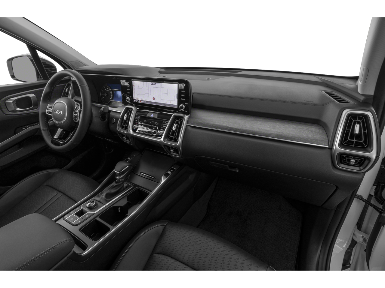 Clean CARFAX. Ebony Black 2023 Kia Sorento EX FWD 8-Speed DCT 2.5L I4 DGI Turbocharged DOHC 16V LEV3-ULEV70 281hp 3.316 Axle Ratio, 3rd row seats: split-bench, 4-Wheel Disc Brakes, 6 Speakers, ABS brakes, Air Conditioning, Alloy wheels, AM/FM radio: SiriusXM, Apple CarPlay & Android Auto, Auto High-beam Headlights, Auto-dimming Rear-View mirror, Automatic temperature control, Brake assist, Bumpers: body-color, Carpet Floor Mats, Delay-off headlights, Driver door bin, Driver vanity mirror, Dual front impact airbags, Dual front side impact airbags, Electronic Stability Control, Emergency communication system, Exterior Parking Camera Rear, Folding Cargo Tray, Four wheel independent suspension, Front anti-roll bar, Front Bucket Seats, Front Center Armrest, Front dual zone A/C, Front fog lights, Front reading lights, Fully automatic headlights, Heated door mirrors, Heated Front Bucket Seats, Heated front seats, Illuminated entry, Knee airbag, Leather Shift Knob, Leather steering wheel, LED Interior Lighting, Low tire pressure warning, Navigation System, Occupant sensing airbag, Outside temperature display, Overhead airbag, Overhead console, Panic alarm, Panoramic Power Sunroof w/Power Sunshade, Panoramic Sunroof Package, Passenger door bin, Passenger vanity mirror, Power door mirrors, Power driver seat, Power Liftgate, Power passenger seat, Power steering, Power windows, Radio data system, Radio: AM/FM Audio System, Rear air conditioning, Rear anti-roll bar, Rear reading lights, Rear window defroster, Rear window wiper, Remote keyless entry, Roof rack: rails only, Security system, Smart Key w/ Push Button and Remote Start, Speed control, Speed-sensing steering, Split folding rear seat, Spoiler, Steering wheel mounted audio controls, SynTex Artificial Leather Seat Trim, Tachometer, Telescoping steering wheel, Tilt steering wheel, Traction control, Trip computer, Turn signal indicator mirrors, Variably intermittent wipers, Wheels: 7.5J x 18 Machine-Finished Alloy.