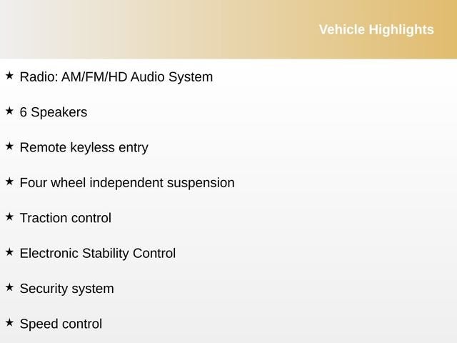 - Radio: AM/FM/HD Audio System -inc: 8" touchscreen, Bluetooth® wireless, wireless Apple CarPlay and Android Auto, 6 speakers, steering wheel mounted audio controls, voice recognition and Bluetooth® phone and streaming audio