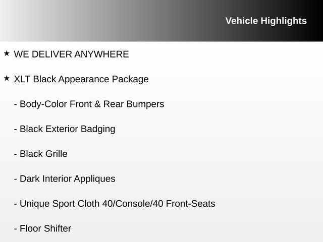 Antimatter Blue Metallic 2025 Ford F-150 XLT RWD 10-Speed Automatic 2.7L V6 EcoBoost WE DELIVER ANYWHERE, 400W Cab & Bed Outlets, 6 Angular Bright Anodized Step Bar, 6 Black Running Boards, Black Exterior Badging, Black Grille, Black Painted Grille w/Chrome Center Bar, Body-Color Front & Rear Bumpers, Chrome Door & Tailgate Handles, Chrome Single-Tip Exhaust, Cloth 40/Console/40 Front Seats, Connected Navigation, Dark Interior Appliques, Dual-Zone Electronic Automatic Temperature Control, Equipment Group 302A Mid, Floor Shifter, Ford Co-Pilot360 Assist 2.0, GVWR: 6,426 lbs Payload Package, Heated Front Seats, Intelligent Access w/Push Button Start, Power Glass Heated Sideview Mirrors, Power-Sliding Rear Window, Remote Start System w/Remote Tailgate Release, Unique Sport Cloth 40/Console/40 Front-Seats, Wheels: 18 Gloss Black, Wrapped Steering Wheel, XLT Black Appearance Package, 3.55 Axle Ratio, 360 Degree Camera, 4-Wheel Disc Brakes, 6 Speakers, ABS brakes, Adaptive Cruise Control w/Stop & Go, Air Conditioning, Alloy wheels, AM/FM radio: SiriusXM with 360L, Auto High-beam Headlights, Auto-Dimming Rear-View Mirror, Brake assist, Bumpers: chrome, Cloth 40/20/40 Front Seat, Compass, Delay-off headlights, Driver door bin, Driver State Detection, Driver vanity mirror, Dual front impact airbags, Dual front side impact airbags, Electronic Stability Control, Emergency communication system: SYNC 4 911 Assist, Evasive Steering Assist, Front anti-roll bar, Front Center Armrest, Front fog lights, Front License Plate Bracket, Front Parking Sensors, Front reading lights, Front wheel independent suspension, Fully automatic headlights, Heated door mirrors, Illuminated entry, Internet access capable: FordPass Connect 5G, Low tire pressure warning, Occupant sensing airbag, Outside temperature display, Overhead airbag, Overhead console, Panic alarm, Passenger door bin, Passenger vanity mirror, Power door mirrors, Power steering, Power windows, Radio data system, Radio: AM/FM Stereo w/SiriusXM 360L, Rear Parking Sensors, Rear reading lights, Rear step bumper, Rear window defroster, Remote keyless entry, Security system, Speed control, Split folding rear seat, Steering wheel mounted audio controls, SYNC 4 w/Enhanced Voice Recognition, Tachometer, Telescoping steering wheel, Tilt steering wheel, Towing Technology, Traction control, Trip computer, Variably intermittent wipers, Voltmeter, Wheels: 17 Silver Painted Aluminum, 400W Cab & Bed Outlets, 6 Angular Bright Anodized Step Bar, 6 Black Running Boards, Black Exterior Badging, Black Grille, Black Painted Grille w/Chrome Center Bar, Body-Color Front & Rear Bumpers, Chrome Door & Tailgate Handles, Chrome Single-Tip Exhaust, Cloth 40/Console/40 Front Seats, Connected Navigation, Dark Interior Appliques, Dual-Zone Electronic Automatic Temperature Control, Equipment Group 302A Mid, Floor Shifter, Ford Co-Pilot360 Assist 2.0, GVWR: 6,426 lbs Payload Package, Heated Front Seats, Intelligent Access w/Push Button Start, Power Glass Heated Sideview Mirrors, Power-Sliding Rear Window, Remote Start System w/Remote Tailgate Release, Unique Sport Cloth 40/Console/40 Front-Seats, Wheels: 18 Gloss Black, Wrapped Steering Wheel, XLT Black Appearance Package.