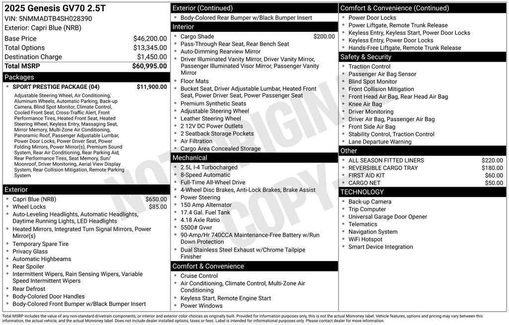 Meticulously equipped, this GV70 2.5T boasts an impressive array of features, including: