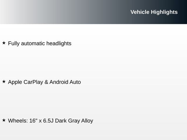 - Wheels: 16 x 6.5J Dark Gray Alloy