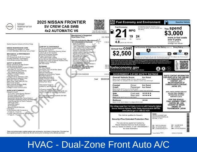 Glacier White 2025 Nissan Frontier SV RWD 9-Speed Automatic with Overdrive 3.8L DI DOHC 24V V6 WE DELIVER ANYWHERE, 120V Power Outlet in Bed, 120V Power Outlet in Rear Center Console, Bed Under-Rail Lighting, Front Halogen Fog Lights, Heated Front Seats, Heated Leather Steering Wheel, Heated Outside Mirrors, HVAC - Dual-Zone Front Auto A/C, I-Key w/Request Switches on O/S Handles, Illuminated Locking Glove Box w/Damper, Leather Shift Lever, Remote Engine Starter, Spray-In Bedliner, SV Convenience Package, Tow Package (T11) (DISC), Tow/Haul Mode Switch, Trailer Hitch w/Wiring Harness, Utili-Track System, 17 Alloy Wheels, 3.692 Axle Ratio, 4-Wheel Disc Brakes, 6 Speakers, ABS brakes, Air Conditioning, Alloy wheels, AM/FM radio: SiriusXM, Anti-whiplash front head restraints, Auto High-beam Headlights, Blind Spot Warning, Brake assist, Bumpers: body-color, Carpeted Floor Mats, Delay-off headlights, Driver door bin, Driver vanity mirror, Dual front impact airbags, Dual front side impact airbags, Electronic Stability Control, Electronic Tailgate Lock, Emergency communication system, Front anti-roll bar, Front Bucket Seats, Front Center Armrest, Front reading lights, Front wheel independent suspension, Fully automatic headlights, Illuminated entry, Knee airbag, Low tire pressure warning, Occupant sensing airbag, Overhead airbag, Overhead console, Panic alarm, Passenger door bin, Passenger vanity mirror, Power door mirrors, Power driver seat, Power steering, Power windows, Premium Cloth Seat Trim, Radio data system, Radio: SXM/AM/FM/AUX/USB Audio System, Rear anti-roll bar, Rear seat center armrest, Rear side impact airbag, Rear step bumper, Remote keyless entry, Security system, Speed control, Speed-sensing steering, Splash Guards Accessory, Split folding rear seat, Steering wheel mounted audio controls, Tachometer, Telescoping steering wheel, Tilt steering wheel, Traction control, Trip computer, Variably intermittent wipers, Voltmeter, Wireless Apple CarPlay/Wireless Android Auto, 120V Power Outlet in Bed, 120V Power Outlet in Rear Center Console, Bed Under-Rail Lighting, Front Halogen Fog Lights, Heated Front Seats, Heated Leather Steering Wheel, Heated Outside Mirrors, HVAC - Dual-Zone Front Auto A/C, I-Key w/Request Switches on O/S Handles, Illuminated Locking Glove Box w/Damper, Leather Shift Lever, Remote Engine Starter, Spray-In Bedliner, SV Convenience Package, Tow Package (T11) (DISC), Tow/Haul Mode Switch, Trailer Hitch w/Wiring Harness, Utili-Track System.