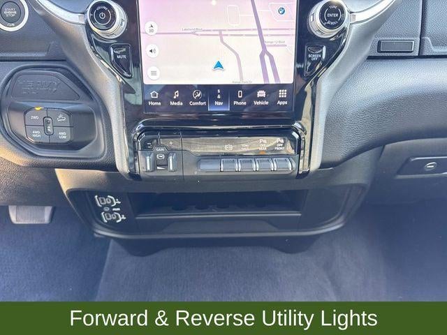 12 Touchscreen Display, 2nd Row In Floor Storage Bins, 4G LTE Wi-Fi Hot Spot, 9 Alpine Speakers w/Subwoofer, Air Conditioning ATC w/Dual Zone Control, Alexa Built-In, Anti-Spin Differential Rear Axle, Apple CarPlay, Auto Power-Folding Mirrors, Auto-Dimming Rear-View Mirror, Big Horn Level 1 Plus Equipment Group, Black Exterior Mirrors, Cold Weather Group, Connected Travel & Traffic Services, Connectivity - US/Canada, Dual Glove Boxes, Emergency Vehicle Alert System (EVAS), Engine Block Heater, Exterior Mirrors Courtesy Lamps, Exterior Mirrors w/Heating Element, Exterior Mirrors w/Supplemental Signals, Foam Bottle Insert (Door Trim Panel), Footwell Courtesy Lamp, Forward & Reverse Utility Lights, Front Performance Tuned Shock Absorbers, Global Telematics Box Module (TBM), Glove Box Lamp, Google Android Auto, GPS Antenna Input, GPS Navigation, HD Radio, Hill Assist-AVEC, Integrated Voice Command w/Bluetooth®, LED Bed Lighting, Locking Lower Glove Box, Luxury Steering Wheel, Mirror Running Lights, MOPAR Deployable Bed Step, MOPAR Spray In Bedliner, MOPAR Winter Front Grille Cover, Off Road Package, Off-Road Info Pages, Power Adjust Mirrors, Power Adjustable Convex Aux Mirrors, Power Heated Folding Telescopic Mirrors, Power Telescoping Mirrors, Premium Cloth 40/20/40 Bench Seat, Radio: Uconnect 5 Nav w/12.0 Display, Rear Dome w/On/Off Switch Lamp, Rear Performance Tuned Shock Absorbers, Remote Start System, Selectable Tire Fill Alert, SiriusXM Radio Service, SiriusXM w/360L, Steering Wheel Mounted Audio Controls, Trailer Tow Pages.