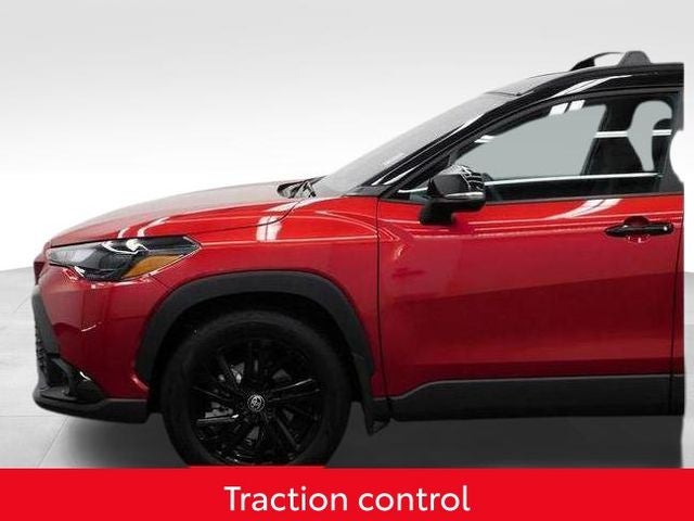 Certified. CARFAX One-Owner. Clean CARFAX. Soul Red Crystal/Jet Black 2025 Toyota Corolla Cross Hybrid Nightshade 2.0L I4 PDI Hybrid DOHC 16V LEV3-SULEV30 150hp eCVT AWD
