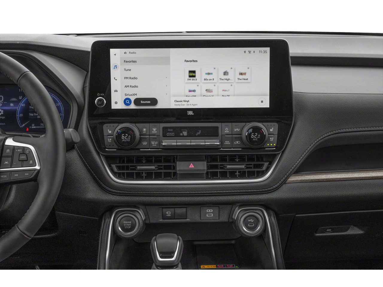- Radio: 12.3" Toyota Audio Multimedia w/JBL Premium -inc: touchscreen, subwoofer and amplifier, wireless Apple CarPlay and Android Auto compatibility, SiriusXM w/3-month trial subscription (see toyota.com/audio-multimedia for details) and 11 speakers